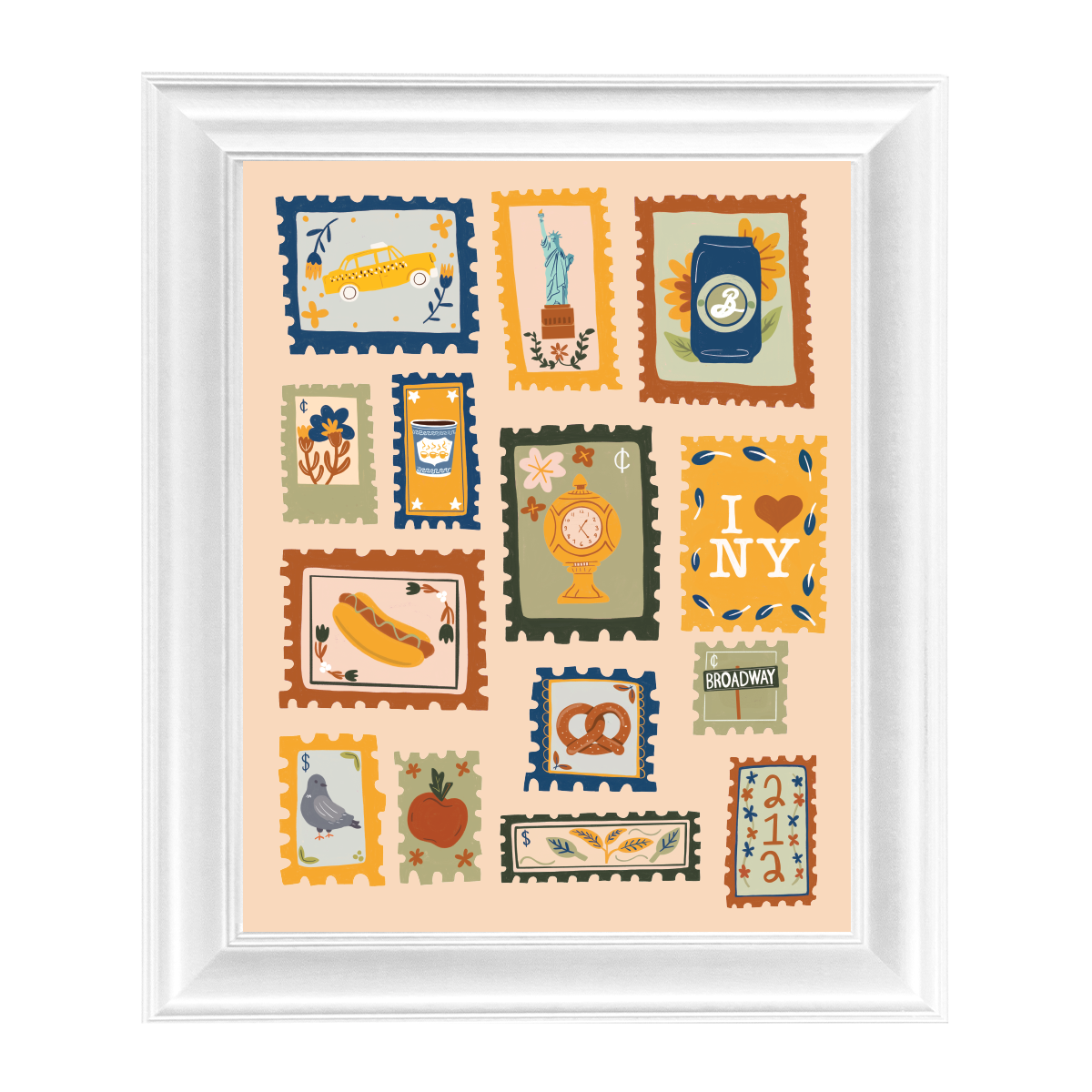 Celebrate the City That Never Sleeps with this vibrant 8x10 art print, inspired by a classic postage stamp design. Whether you’re a New York native or just love its rich history, this art print makes a charming addition to your home or office decor.