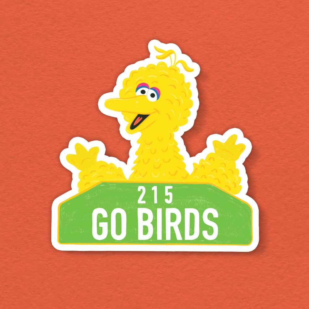 This vinyl sticker features an Illustration of big bird with the phrase Go Birds. Perfect for laptops, water bottles, or anywhere that needs a sticker. Inspired by Football, Children's TV Shows, and Philadelphia